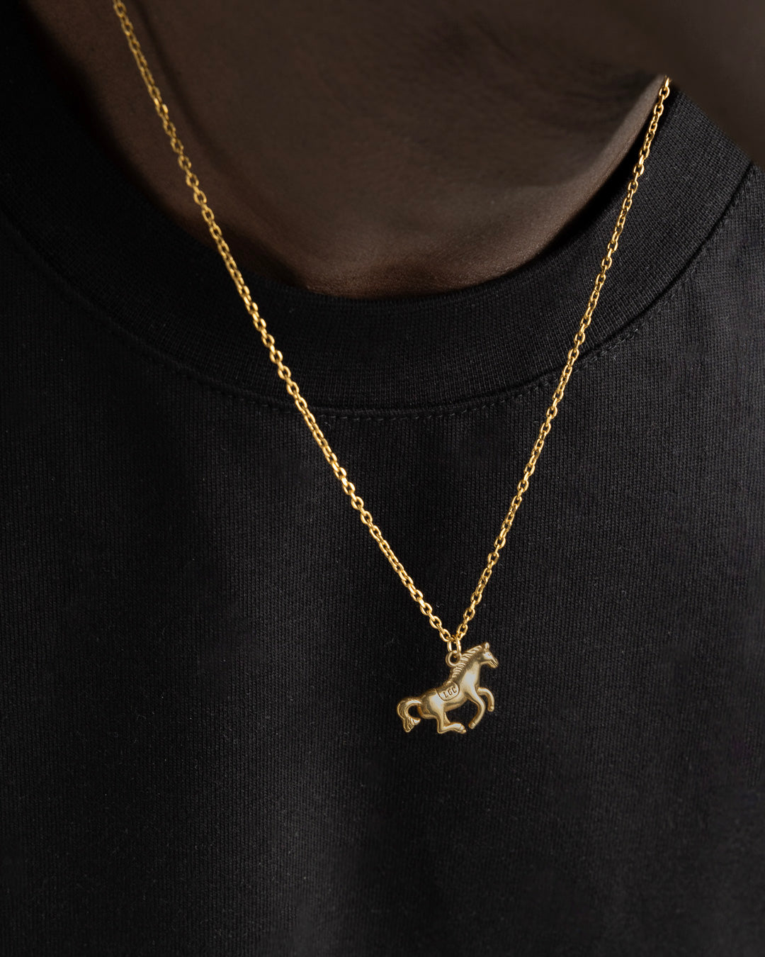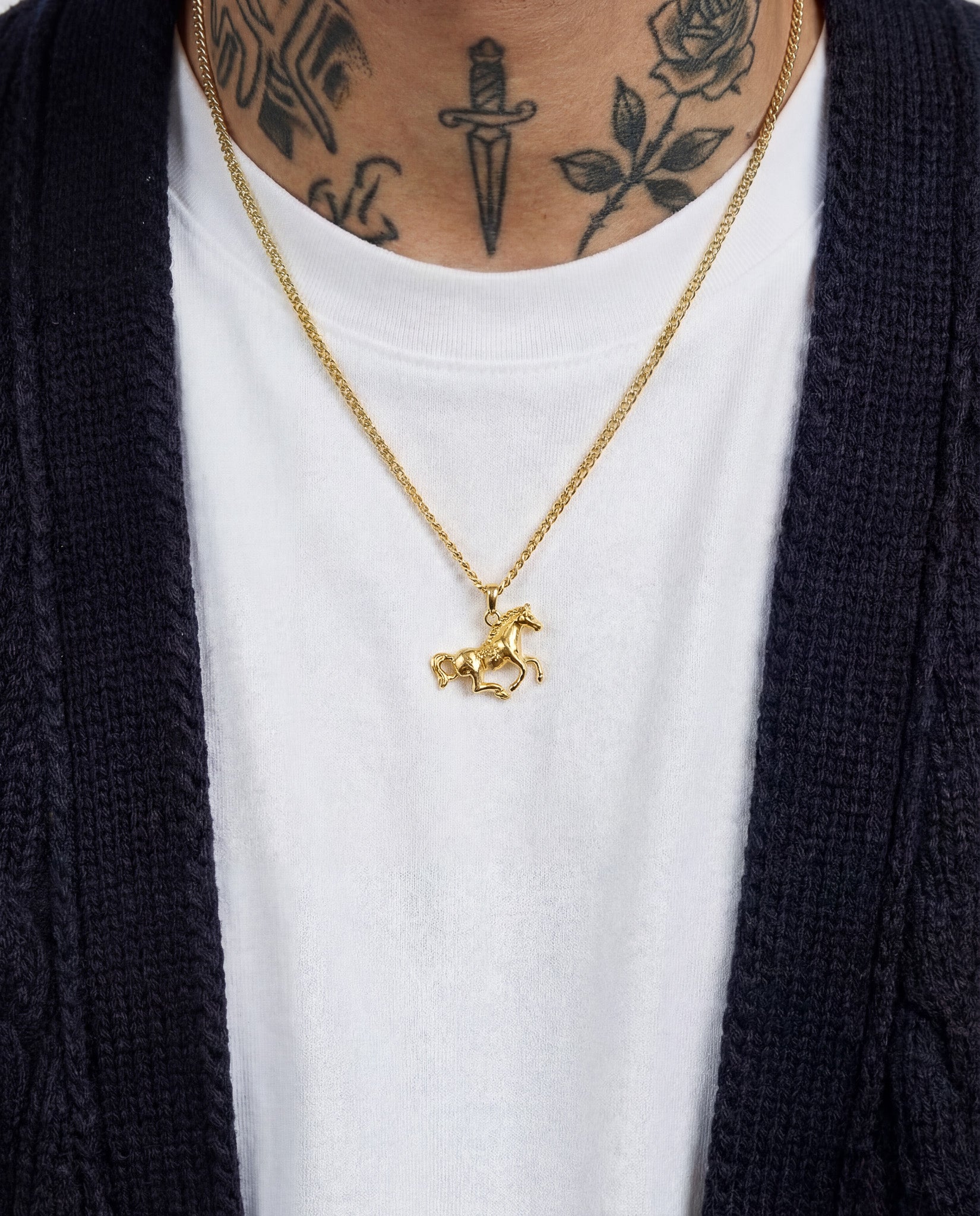 Gold necklace with horse pendant. One of the Lost Gen Club classics.