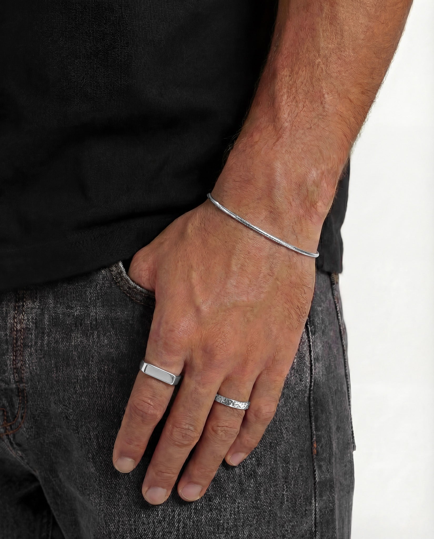 Our products are crafted from premium stainless steel, a robust and durable material that resists tarnishing, fading, and discoloration over time. It's also hypoallergenic, ensuring it won't irritate your skin or turn it green.